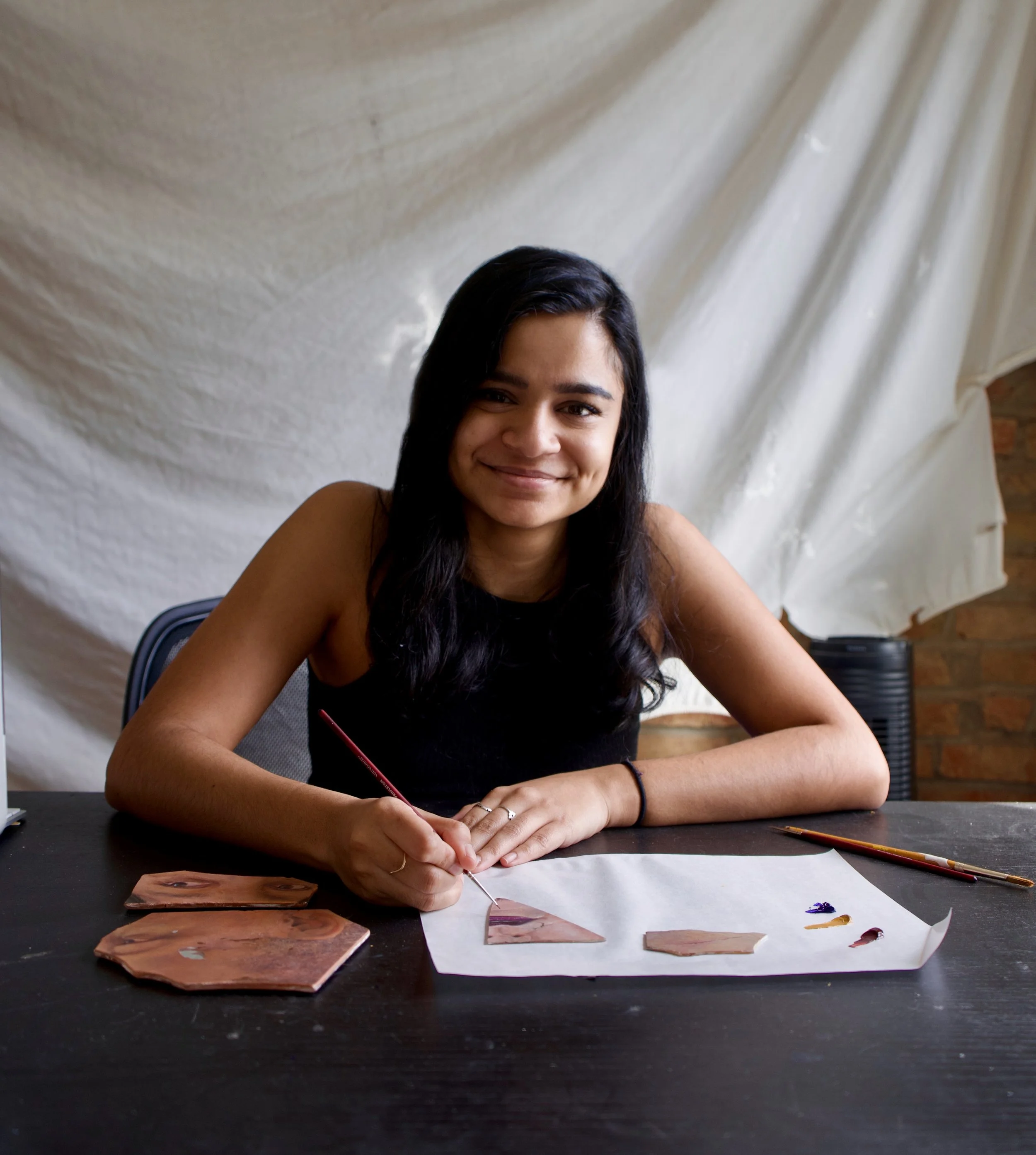 Natasha Zeta (b. 1993, Mumbai, India) is a mixed media painter who creates interactive portraiture with broken mirrors, allowing the viewer to step into another perspective, challenge their conceptions and empathize with her subjects. Zeta seeks to amplify narratives from marginalized communities that disproportionately experience mental illness, but whose stories are vastly underrepresented in our conversations about mental health. To further this mission, Zeta collaborates with nonprofits to paint their constituents, foster community engagement, cultivate cultural reform, and raise public awareness.