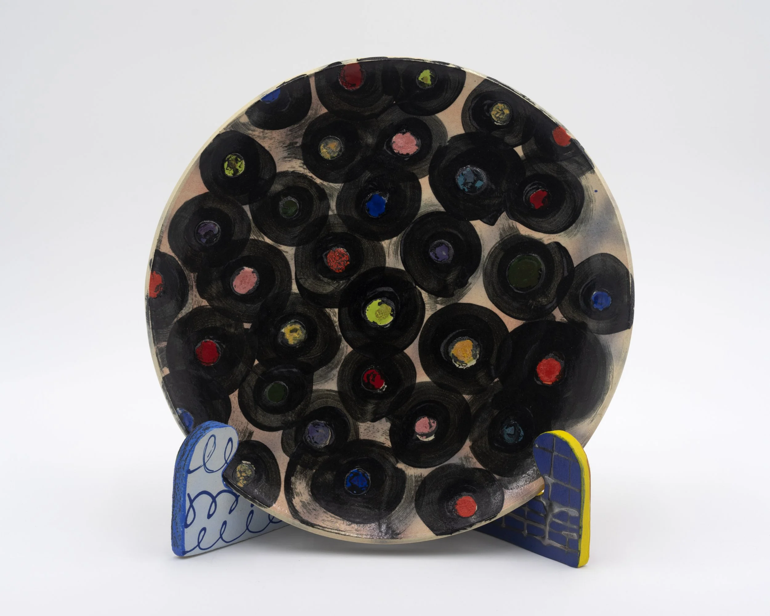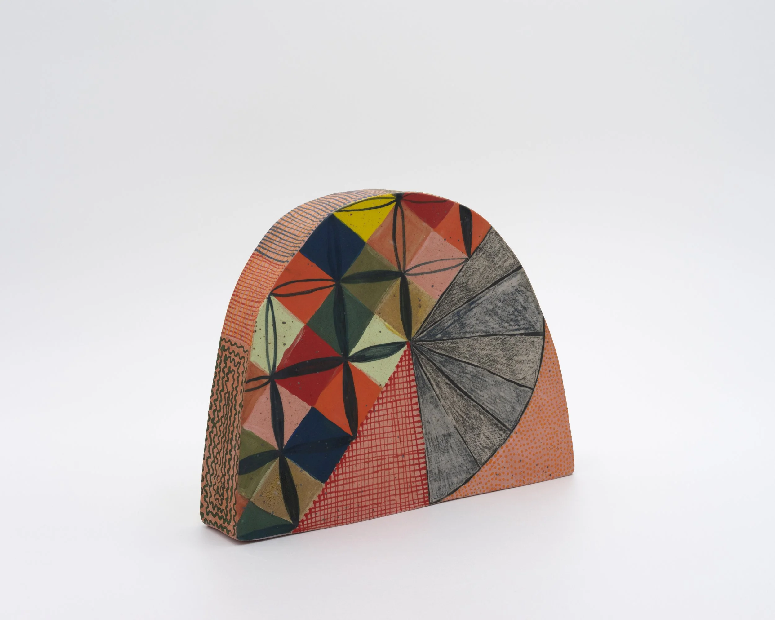 Corinna Cowles’ work — pockets, pillows, paintings, curtains, wallpaper, and drapes in addition to ceramic work — is inspired by clothing and decorative patterns, engaging the viewer with absurd dislocations and transformations. Identity, craft, sculpture, domesticity, and class all seep out from a porous, multi-material plane of grids, loops, and abstractions of the everyday.